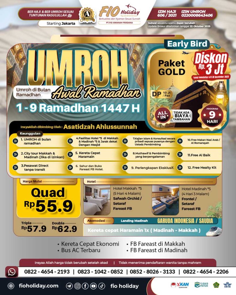 - 1 Ramadhan 1447 H / 2025 (Umroh Gold Awal Ramadhan)