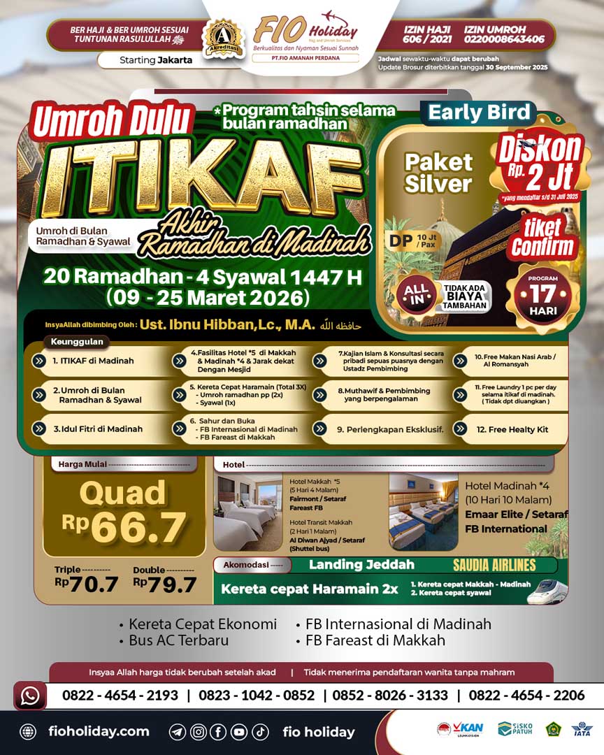 20 Ramadhan 1447 H / 2025 (Umroh Silver Akhir Ramadhan Madinah)