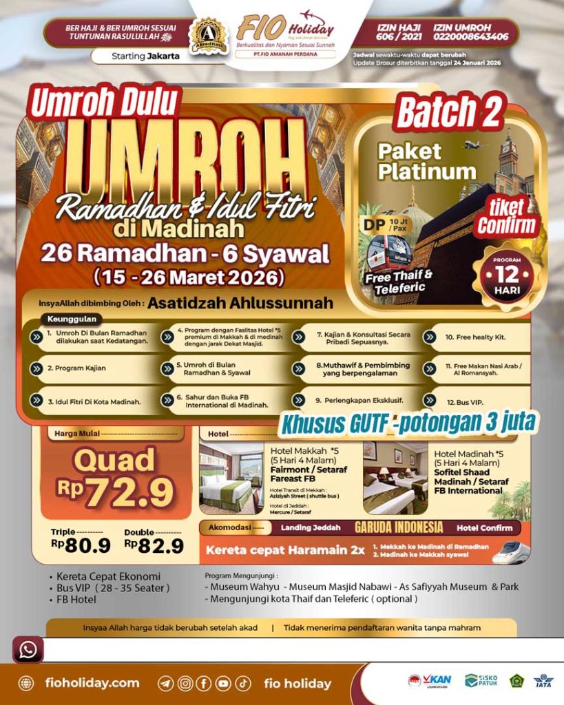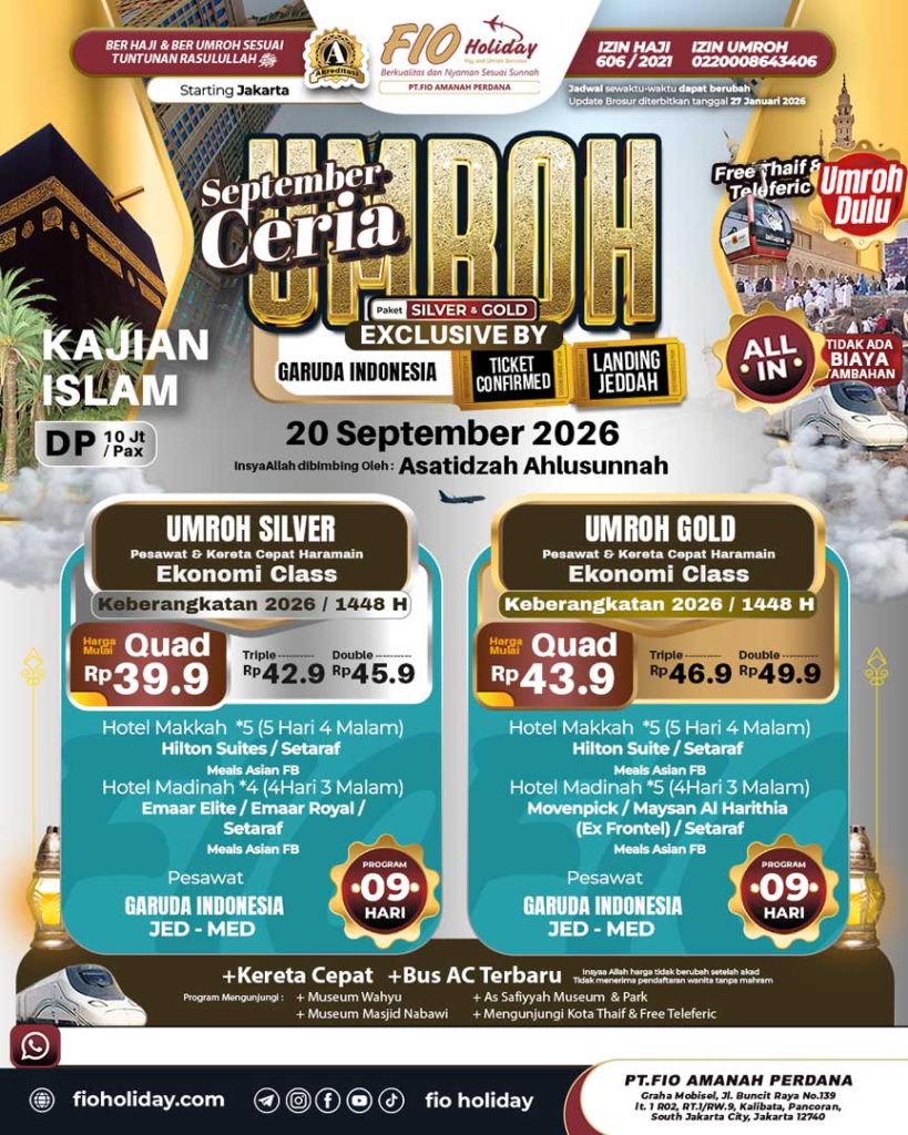 Nikmati perjalanan ibadah umroh yang berkualitas dengan fasilitas premium dan akomodasi terbaik di kelasnya.